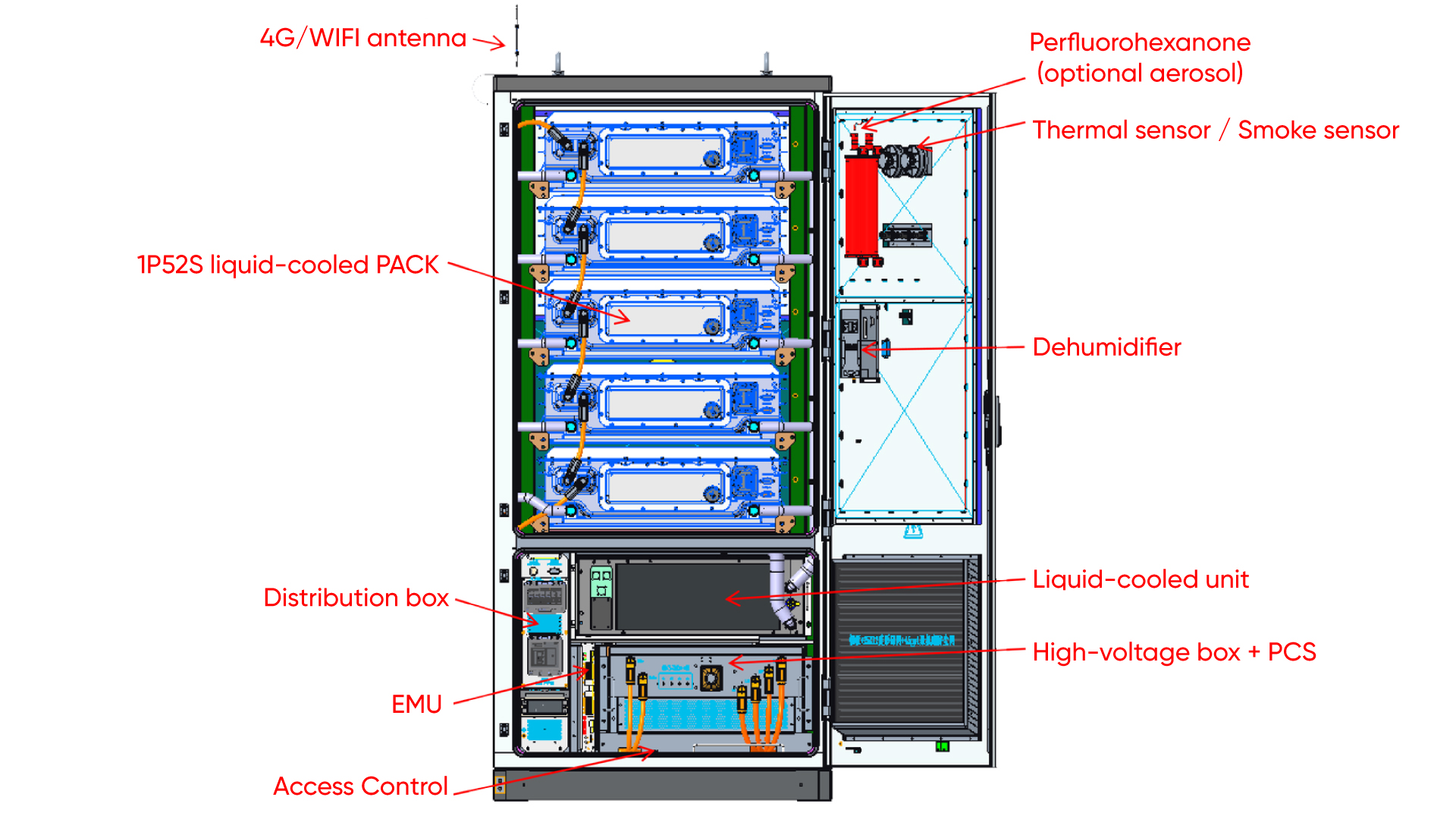 Energy storage systems are high-voltage assets. The password or key-operated access control ensures that only authorized, trained technicians can interact with the internal components, mitigating the risk of human error.